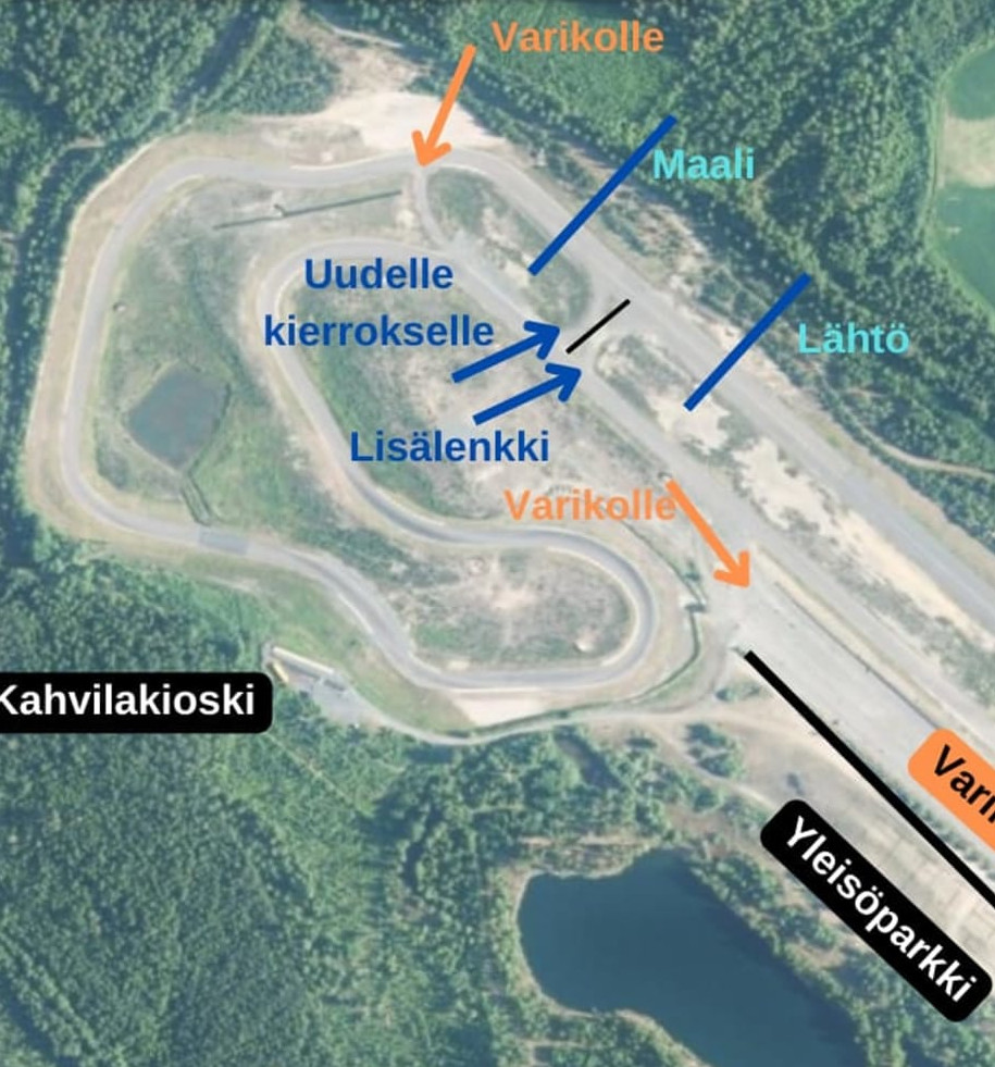 - Lähtölaatalle mahtuu 7 autoa rinnakkain.